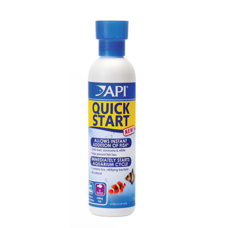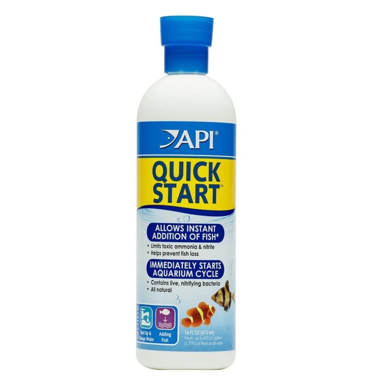 API QUICK START nitrifying bacteria allows for the instant addition of fish, as it immediately starts the natural aquarium cycle with beneficial bacteria, which converts toxic ammonia into nitrite, then into harmless nitrate to help prevent fish loss in your tank. Best for use when starting a new aquarium, after water changes and filter changes, and when adding new fish to an existing aquarium. API QUICK START nitrifying bacteria may be used in both fresh and saltwater aquariums.