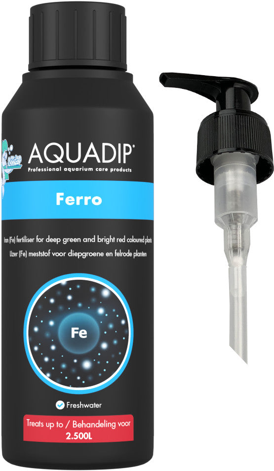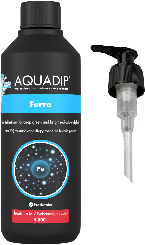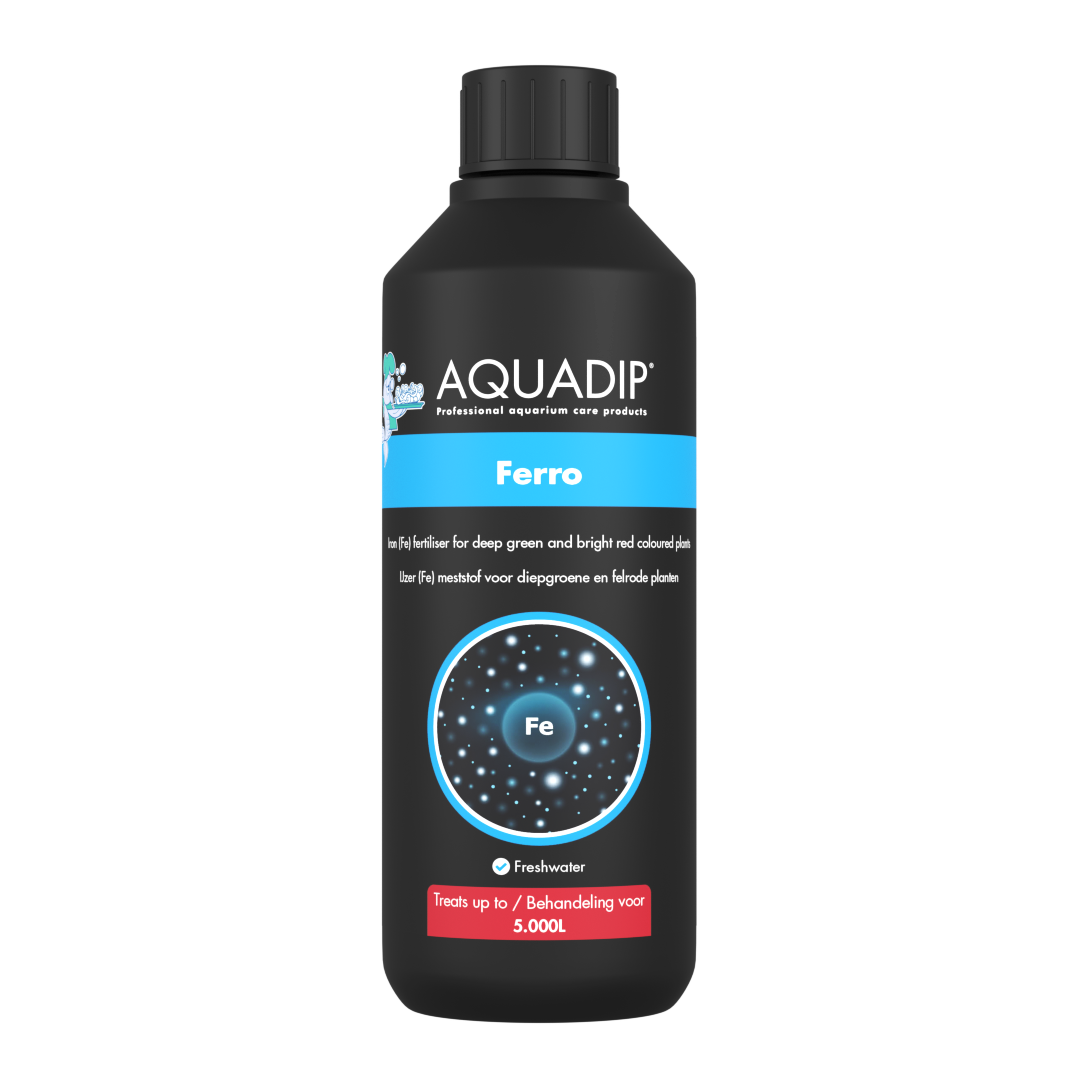 AQUADIP Ferro is a concentrated iron source for more vibrant and healthy plants. Iron is necessary to produce chlorophyll and is vital for photosynthesis. In case of iron (Fe) deficiency leaves will fade in colour from light green to yellow to white, called chlorosis. Dosing AQUADIP Ferro strengthens the leaves and growth and ensures green and red coloured plants.