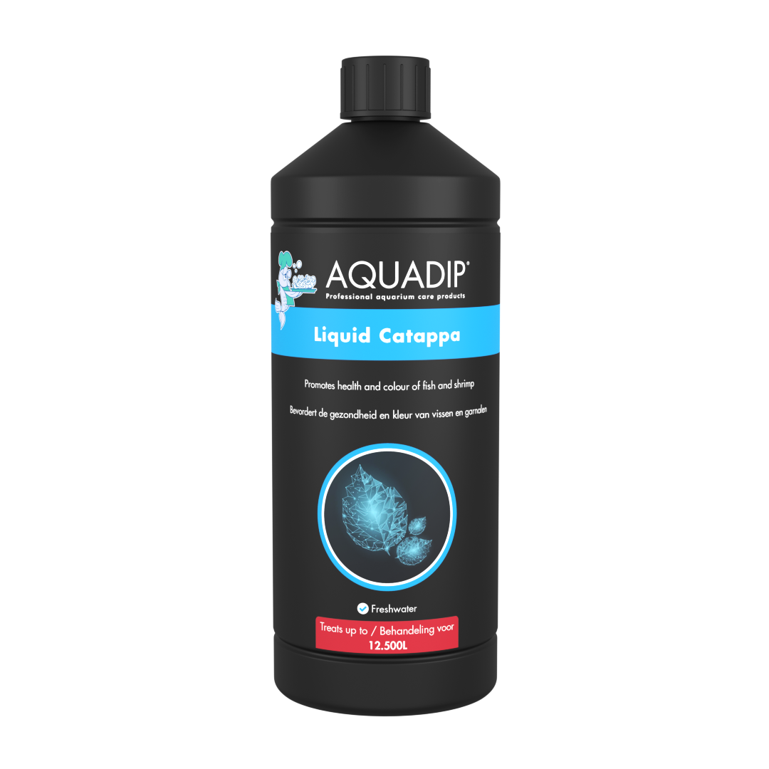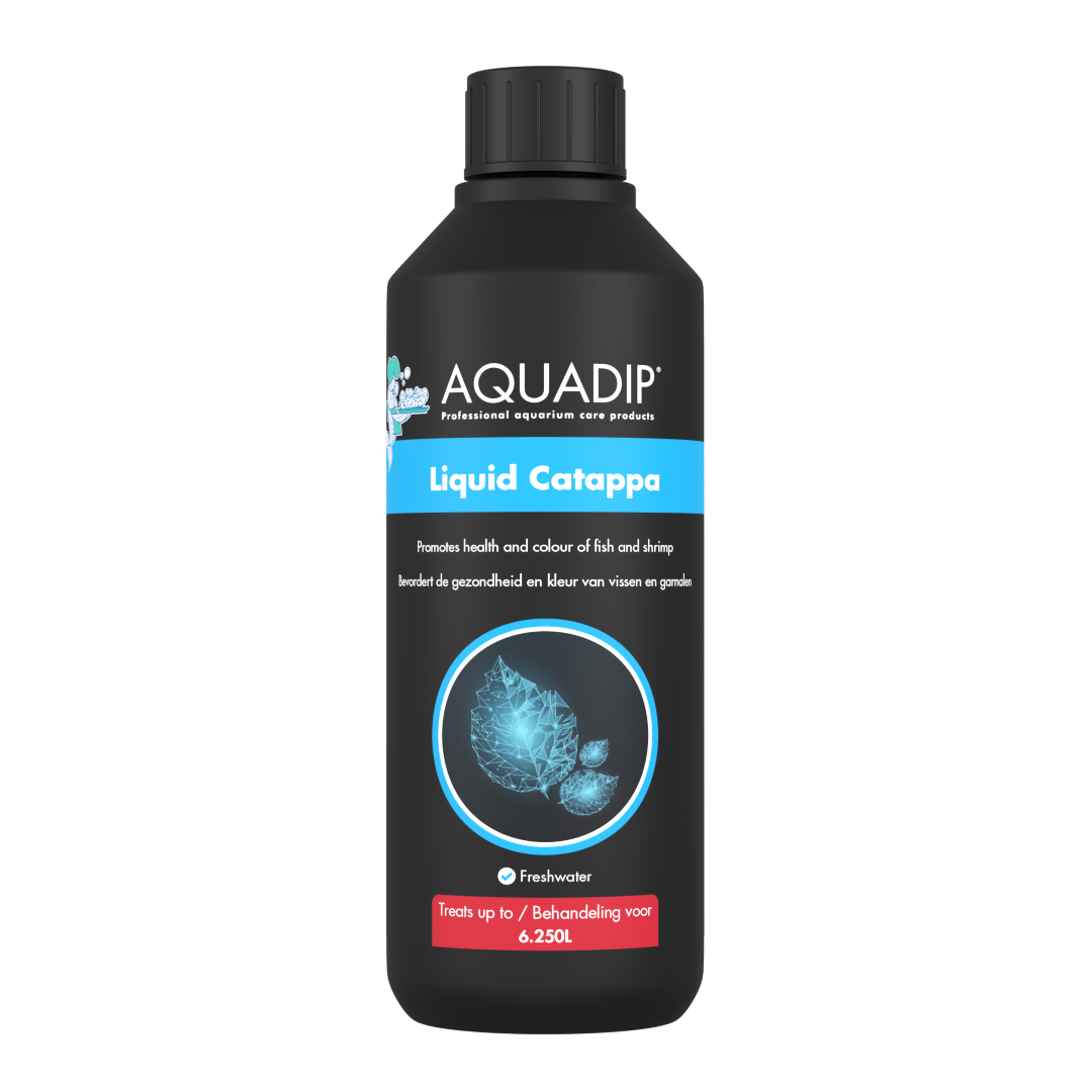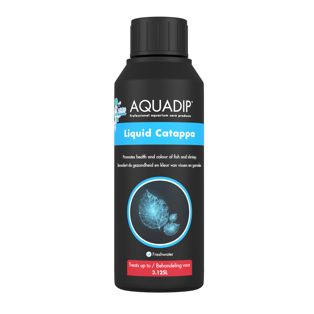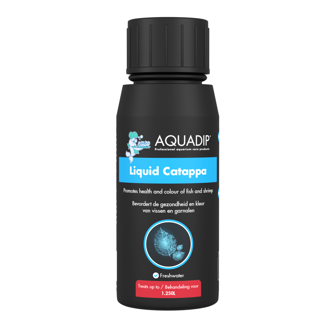AQUADIP Liquid Catappa is the liquid form of well-known catappa leaves. Catappa leaves discolour the water but AQUADIP Liquid Catappa will keep the water clear. It has got numerous active ingredients and it creates the perfect environment for fish and shrimps. It lowers the pH for fish from tropical soft water areas, strengthens and protects the mucous membranes and gills of the fish, improves colour, reduces stress and promotes spawning behaviour and it is effective against fungal infections.