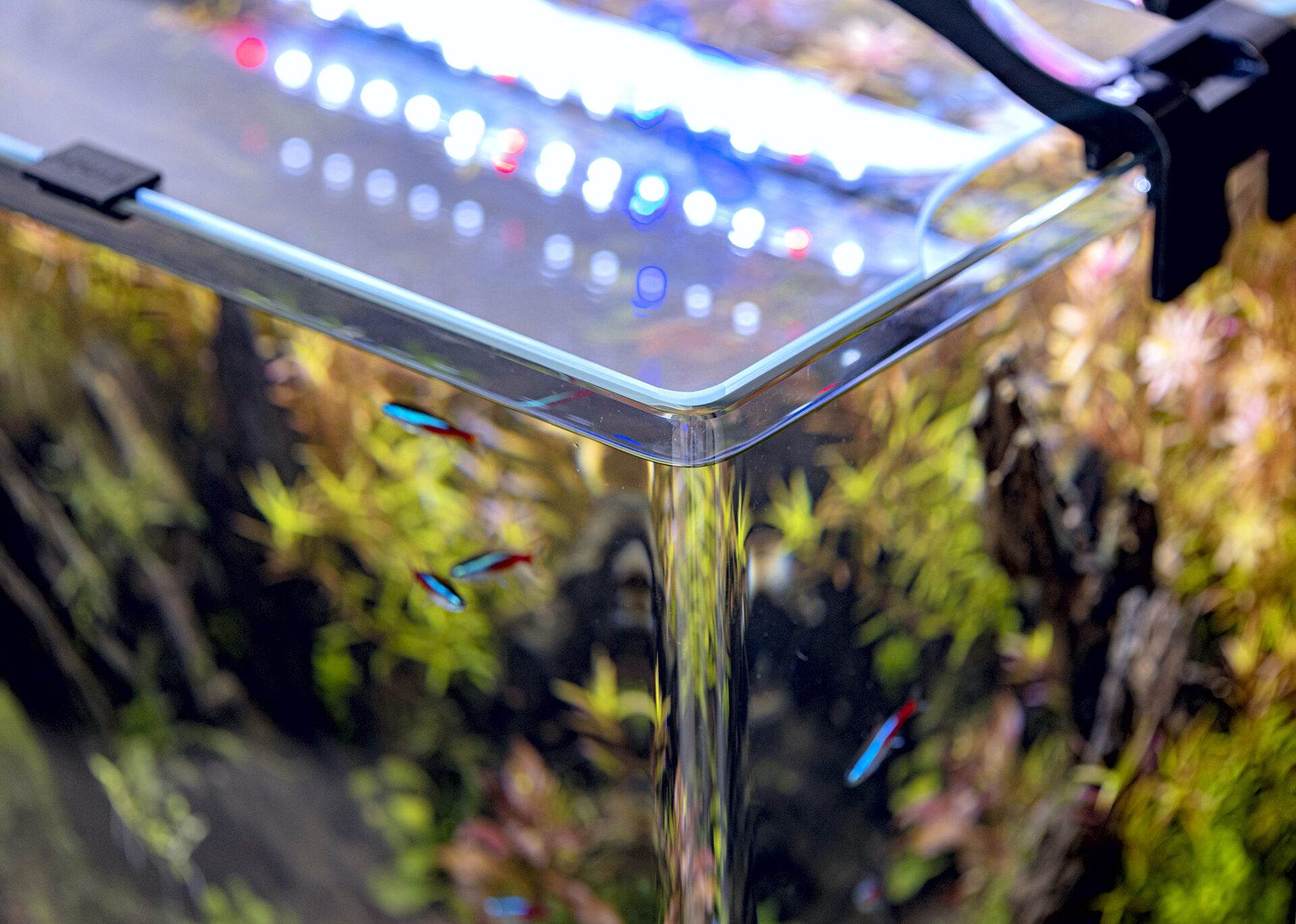 - The tank (including cover made of opti-type glass), with increased transparency and rounded front corners, without standard silicone joints.