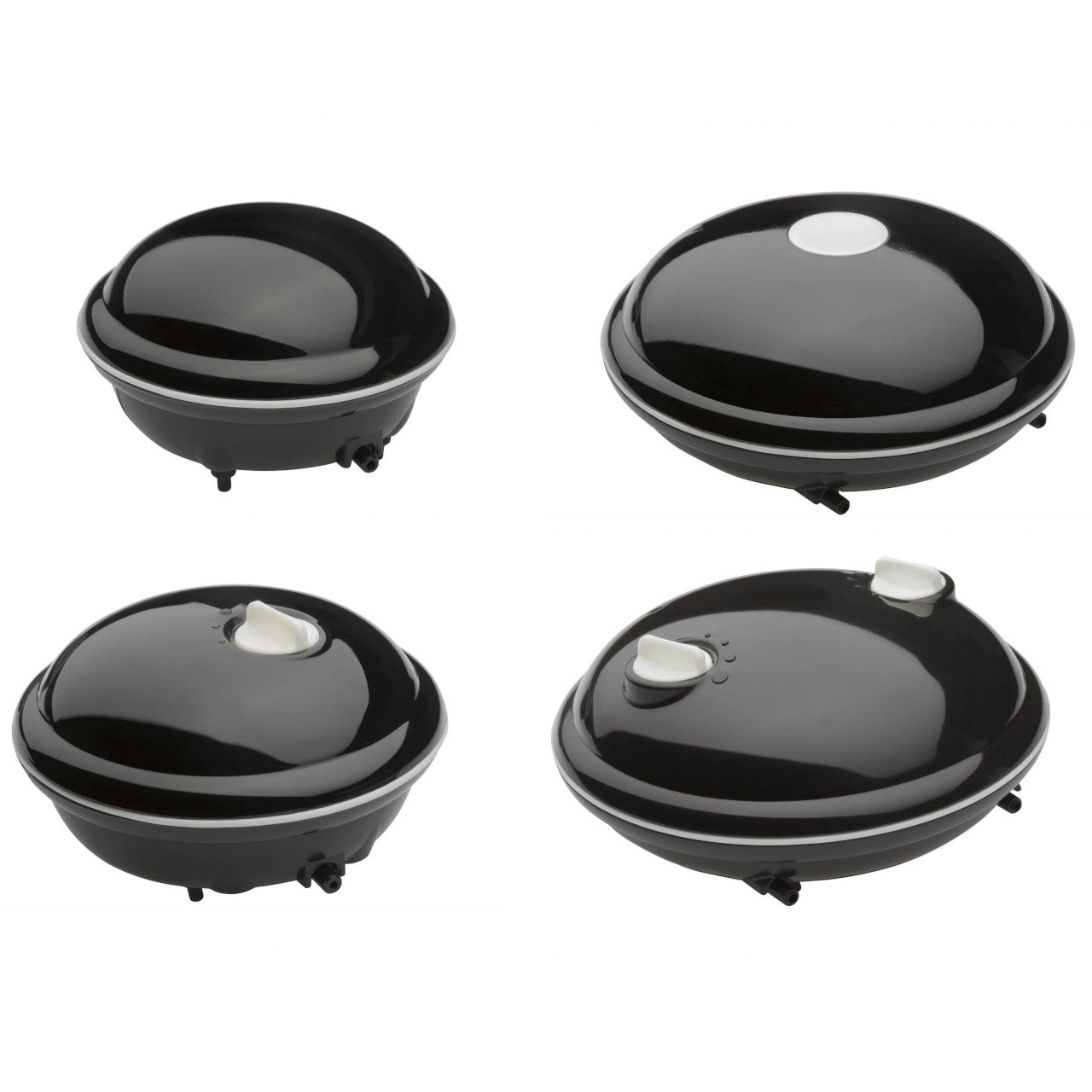 The body of the new aerator is characterized by sleek black-and-white design. Thanks to the rounded disk-like shape, the device is easy to keep clean.