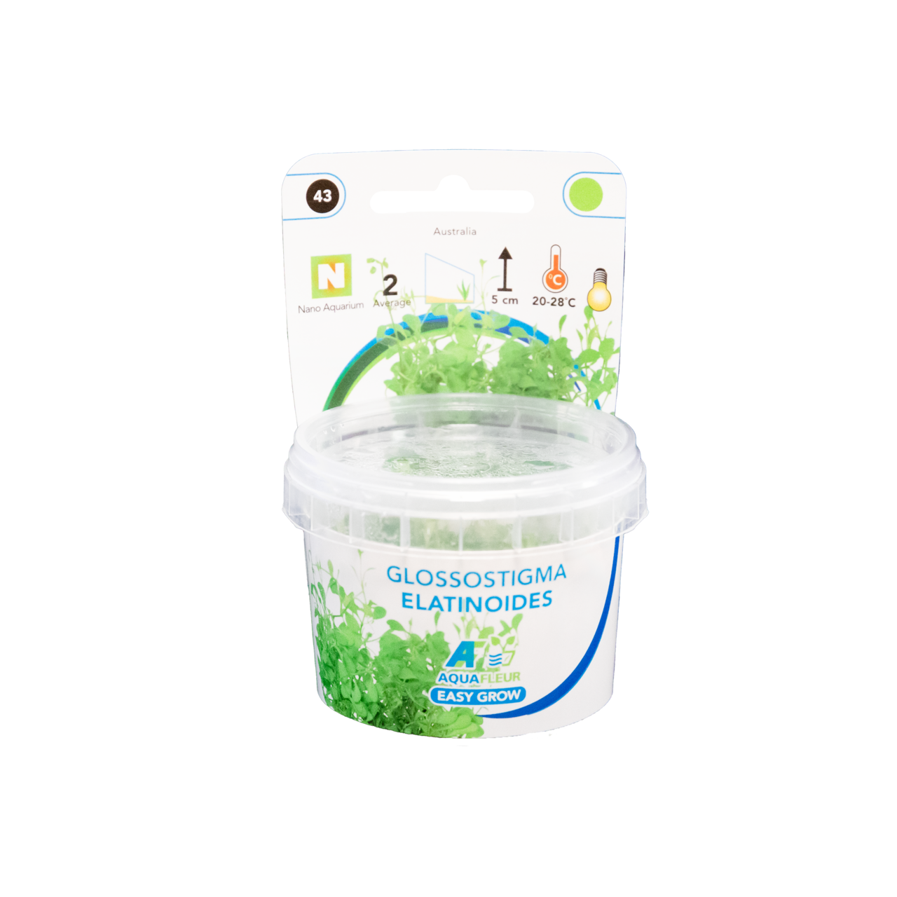 Glossostigma elatinoides from New Zealand is much in demand in Japanese-inspired aquariums. It is one of the smallest aquarium plants (2-3 cm tall), and thus a good foreground plant. A difficult plant demanding a lot of light. Grows upwards if light is poor. Make sure larger plants do not overshadow it. When planting in the aquarium small clumps (approx. 1/8 pot) should be placed at intervals of a few centimetres to help the plants grow together more quickly. CO2 addition and soft water promote growth significantly.