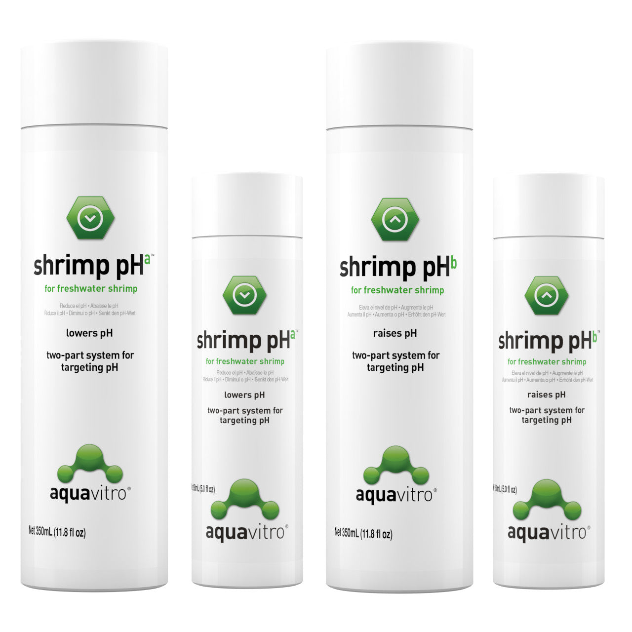 aquavitro® shrimp pHa and pHb are a two-part system which aids in replicating the water chemistry found in the native habitats of freshwater shrimp by buffering water to the natural pH for each specific type of shrimp. Used according to directions, shrimp pH maintains the proper pH parameters of freshwater shrimp while also softening water and supporting growth of plants in shrimp aquaria. shrimp pH is made from a unique buffer system that is extremely stable and does not add sodium, which can damage plants in the aquarium.