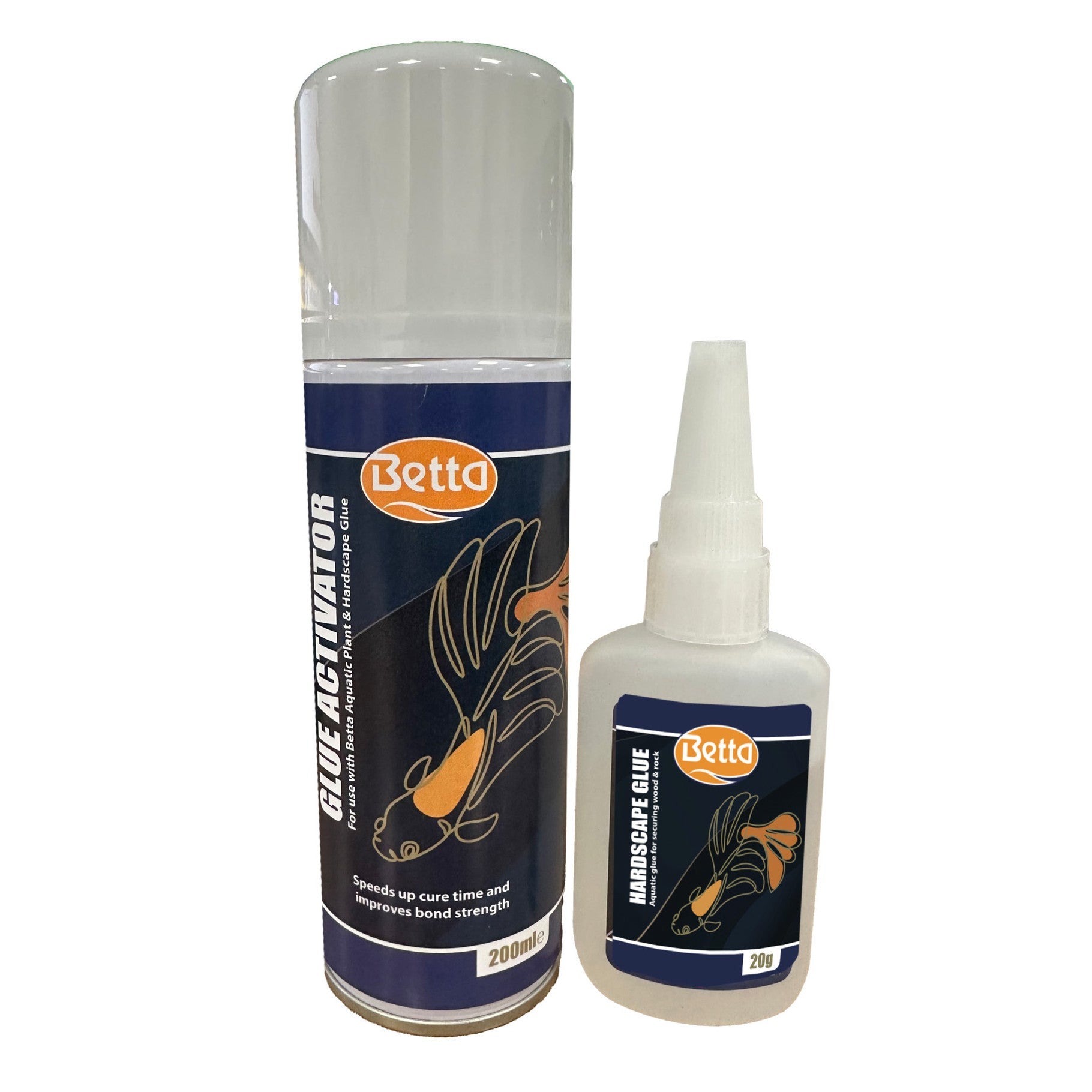 Betta Hard Scape Glue is a high-strength, fast curing liquid adhesive, for bonding rock, wood, metal, plastic, and glass. Cures at between 1 and 20 seconds on most materials. An activator is available separately to speed up curing if required.