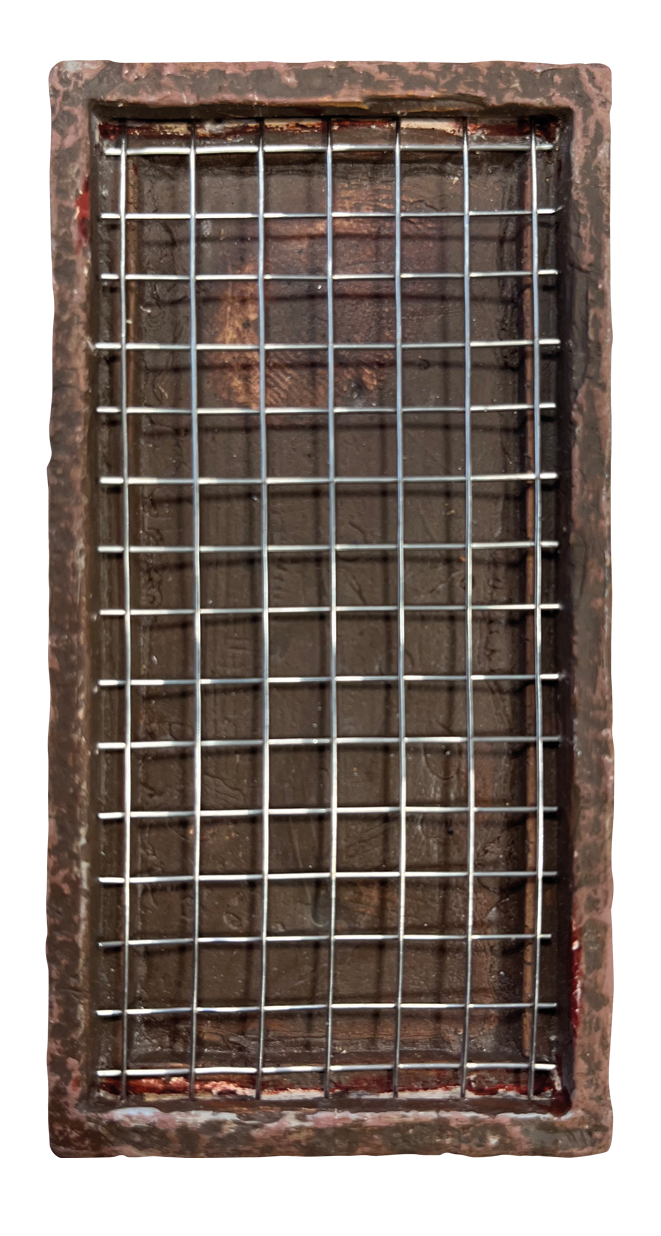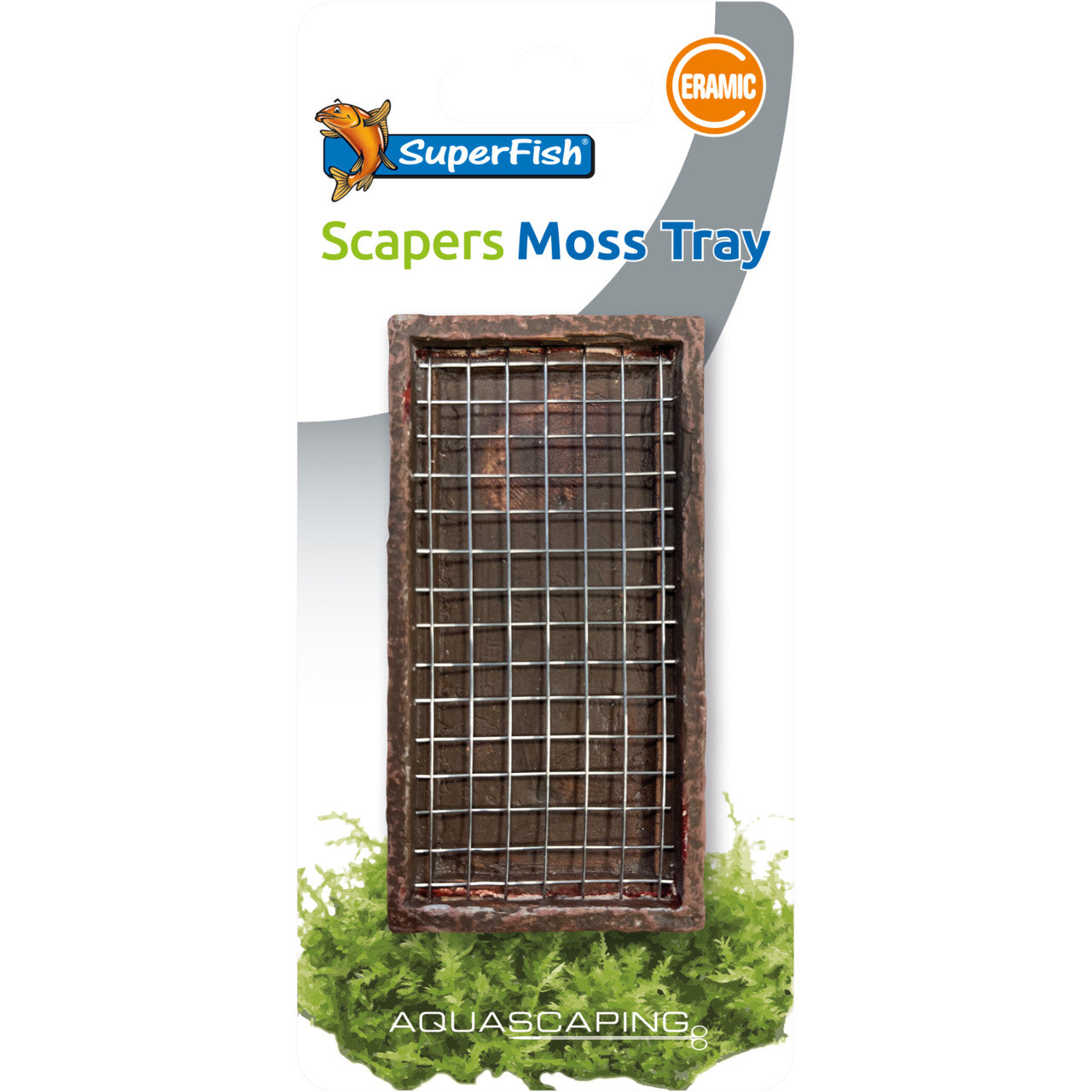Ceramic base with stainless steel grid to grow moss and other carpet plants on.