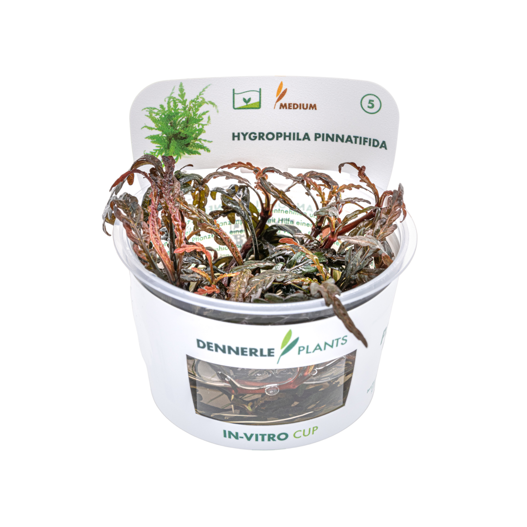 All Dennerle Plant-It! In-Vitro plants are cultivated under sterile conditions. This ensures that there are no pest infestations or pathogens present. Additionally, there are no algae, snails, or snail eggs. These are very compact, highly branched plants. The submerged habit eliminates the changeover phase from emersed to submerged in the aquarium.