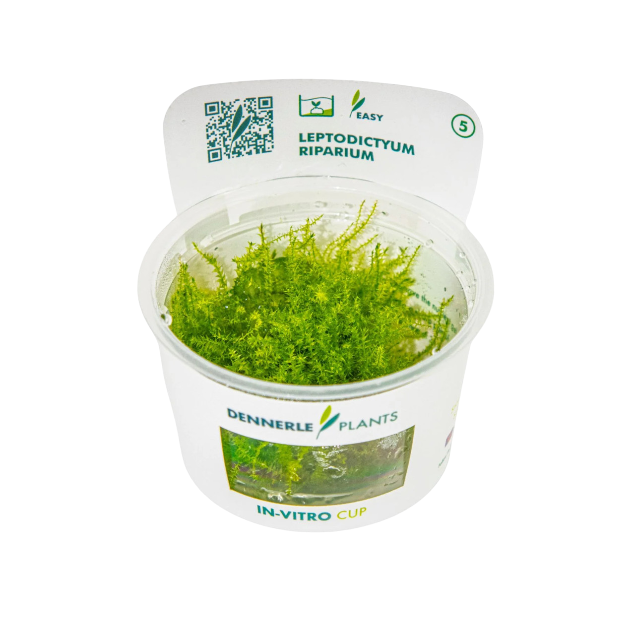 Leptodictyum riparium, commonly known as "stringy moss," is a slender and upright moss capable of withstanding a wide range of temperatures. Thought to have originated in Europe, it is now found across much of the world. Sporting an intense, slightly translucent green hue, it's an undemanding and easy-to-care-for moss that readily adheres to rocks and tree roots in aquariums.