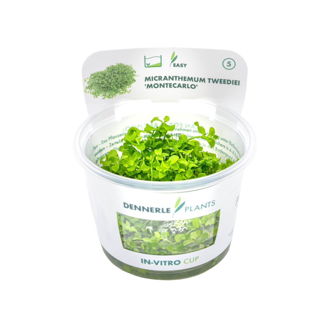 Micranthemum 'Monte Carlo' comes from Argentina. It has compact, round and fresh light green leaves on creeping stalks and creates a fast-growing carpet in the front of the aquarium. The plant can grow in light shadow, but requires good light conditions in order to develop optimally and become really compact.