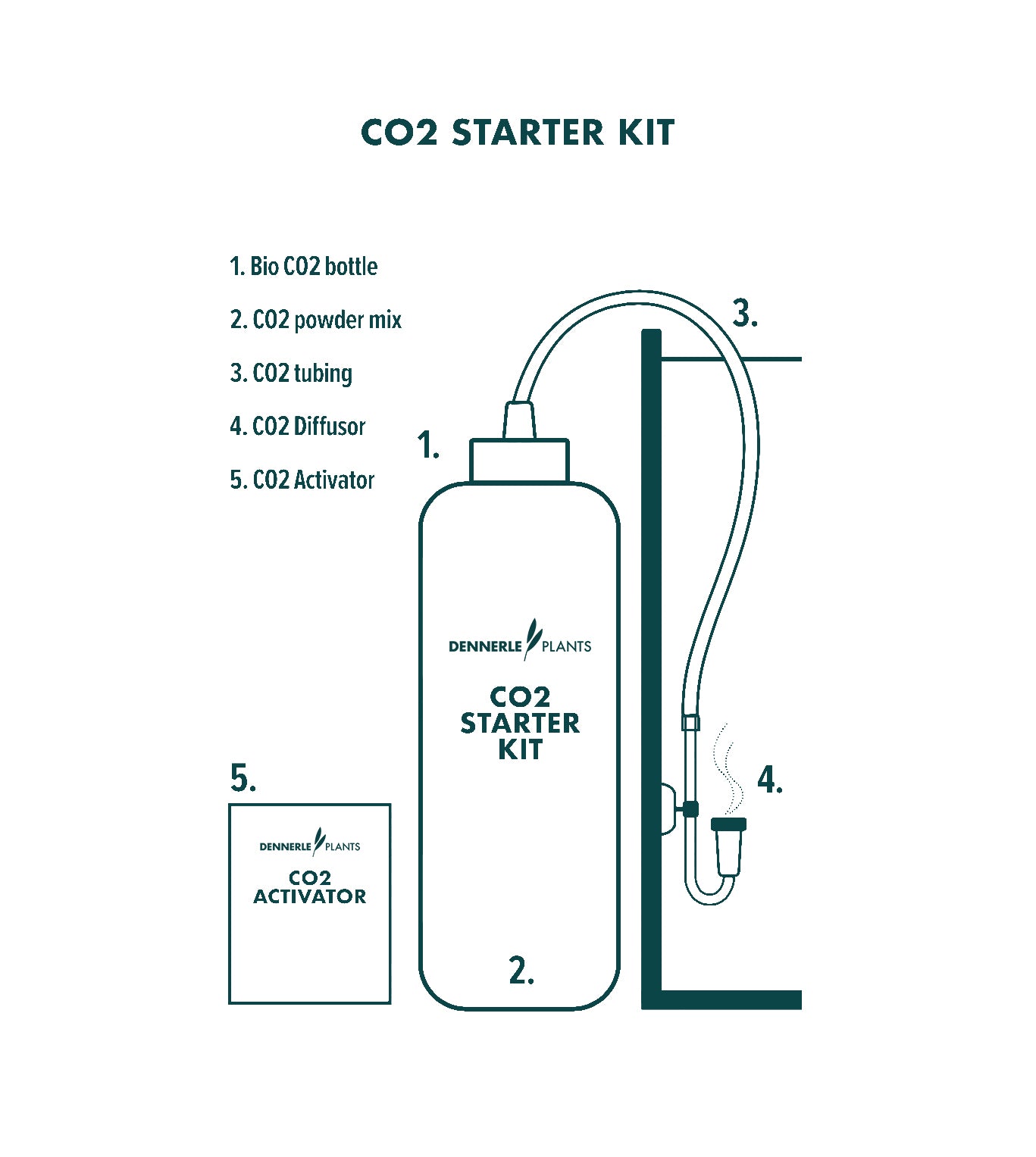 Contents: Bio CO2 Bottle, CO2 Powder Mix, CO2 tubing transparent 4/6mm 100cm long, CO2 Diffuser 17mm Membrane 14cm long, 2 Suction Cups, CO2 Activator 5x, Instruction Manual