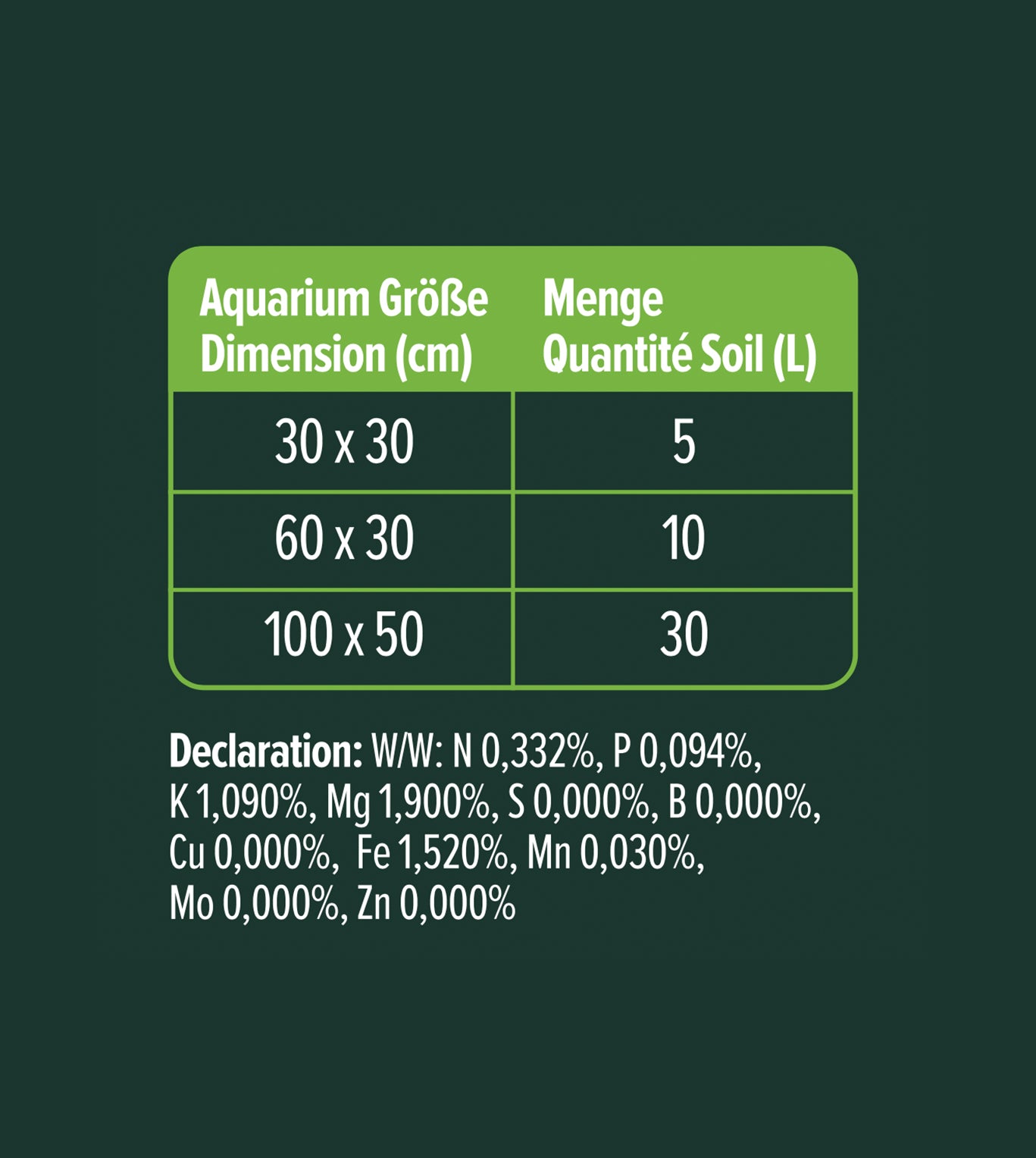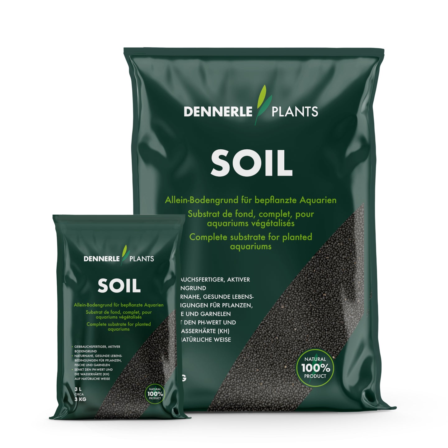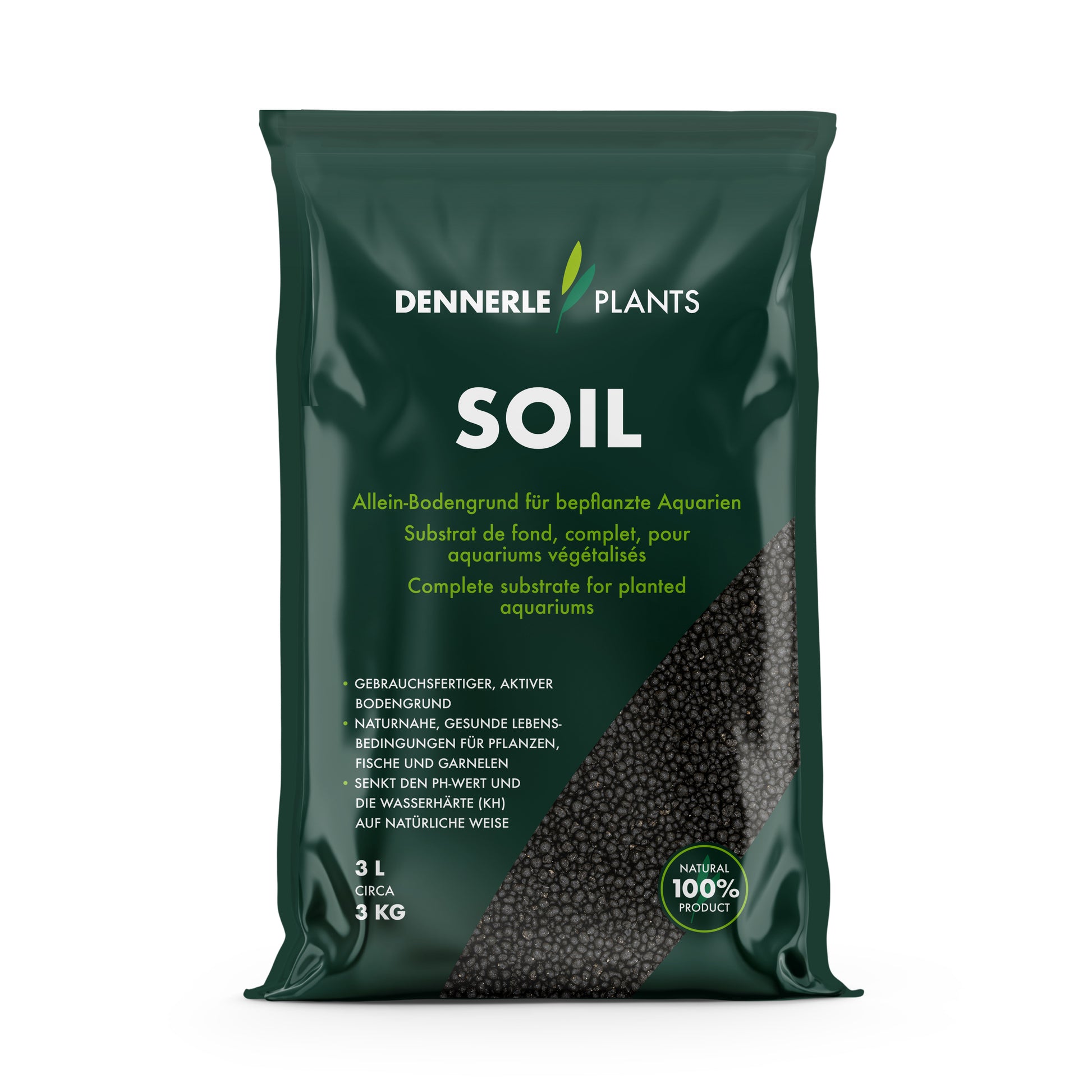 Usage: Fill Soil substrate directly from the bag into the aquarium. For foreground plants we recommend a minimum height of 4-5cm, which should rise towards the back. Soil that rises towards the back makes the aquarium look larger, because the depth effect is increased. A substrate height of 7-9cm in the background is sufficient for most plants. Depending on the design, the substrate in the background can also be considerably higher. Dennerle Plants Soil can be used as the sole substrate. An additional bottom layer of long-term nutrient soil, such as Dennerle Plants Substrate, is not necessary, but can be used for particularly long-lasting effect.