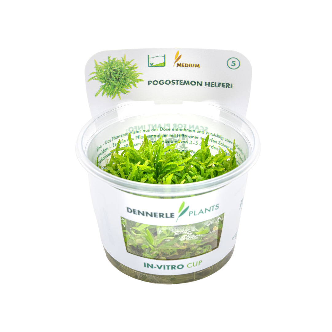 All Dennerle Plant-It! In-Vitro plants are cultivated under sterile conditions. This ensures that there are no pest infestations or pathogens present. Additionally, there are no algae, snails, or snail eggs. These are very compact, highly branched plants. The submerged habit eliminates the changeover phase from emersed to submerged in the aquarium.