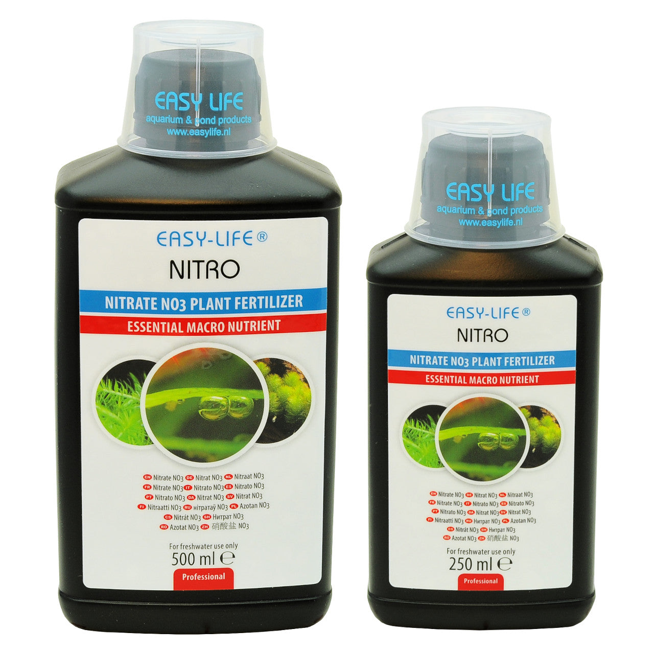 Easy-Life Nitro provides extra nitrate (NO3) in planted aquariums where there are few or no fish. Despite nitrate being one of the main foods for algae, a small amount is still required for plants to grow. Plants normally get this from decaying fish waste, but in modern aquascapes there are often very few fish, so some extra nitrate may need adding. Waste from shrimp and other invertebrates doesn't produce nitrate either.