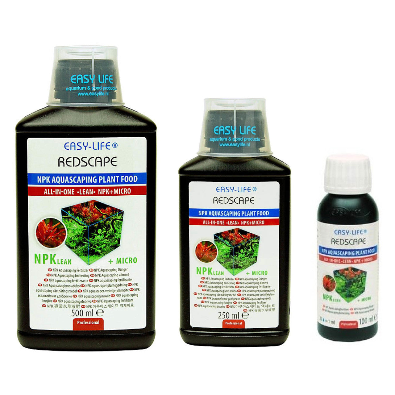 Easy-Life RedScape enhances the red colouration of plants in aquascapes or aquariums that have few or no fish. Species such as Red Ludwigia, Alternanthera Reineckii, Red Tiger Lotus, Rotala Macrandra, and Echinodorus Red Rubin will all benefit from using this. RedScape is a professional strength aquascape plant food that contains lean NPK (nitrate, phosphate, potassium) and trace elements all vital for these plants' development.