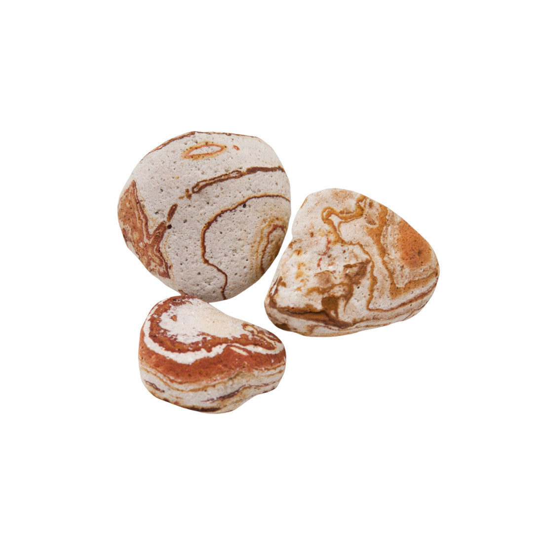 These pebbles are a natural product and individual pieces vary, this picture is only an example (pebbles are shown wet). Weight and sizes are only indicative.