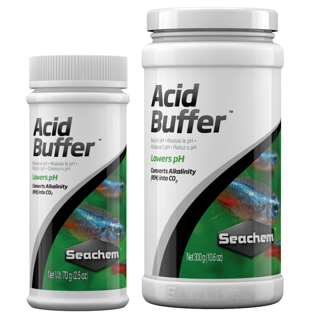 Acid Buffer™ is a non–phosphate buffer to lower pH and buffer with Alkaline Buffer™. Both buffers are designed for the planted aquarium or for very hard water where phosphate buffers may pose an algae or cloudiness problem. Acid Buffer™ lowers pH and buffers between 6.0 and 8.0 when used with Alkaline Buffer™. As Acid Buffer™ lowers pH it converts carbonate alkalinity (KH) into available CO2.