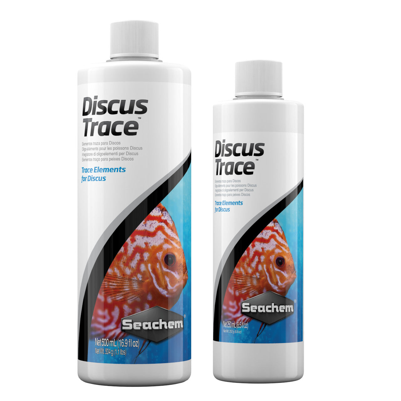 Discus Trace™ supplies a broad range of trace elements demonstrated* to be necessary for proper fish health and growth. Unlike terrestrial animals, fish obtain nutrients from both their food and environment. Trace elements are normally depleted by utilization, oxidation and precipitation, thus it is important to restore them on a regular basis. Discus Trace™ contains only those elements actually demonstrated* to be required by fish.