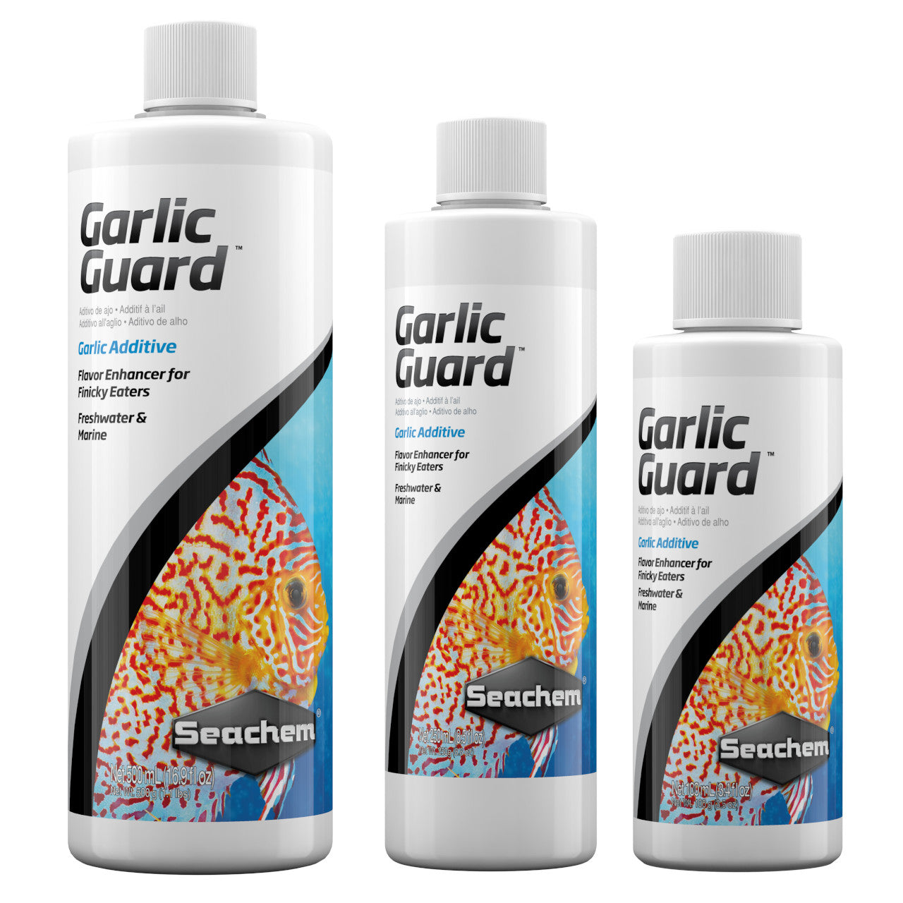 GarlicGuard is an all natural garlic scented odor and flavor enhancer for freshwater and saltwater fish. Our research has shown that many fish are attracted to natural odors, such as garlic. Simply mix GarlicGuard™ with any food item, such as Seachem’s NutriDiet, to attract the interest of finicky eaters, e.g. discus and marine angelfish. GarlicGuard is safe for reef and planted aquariums.
