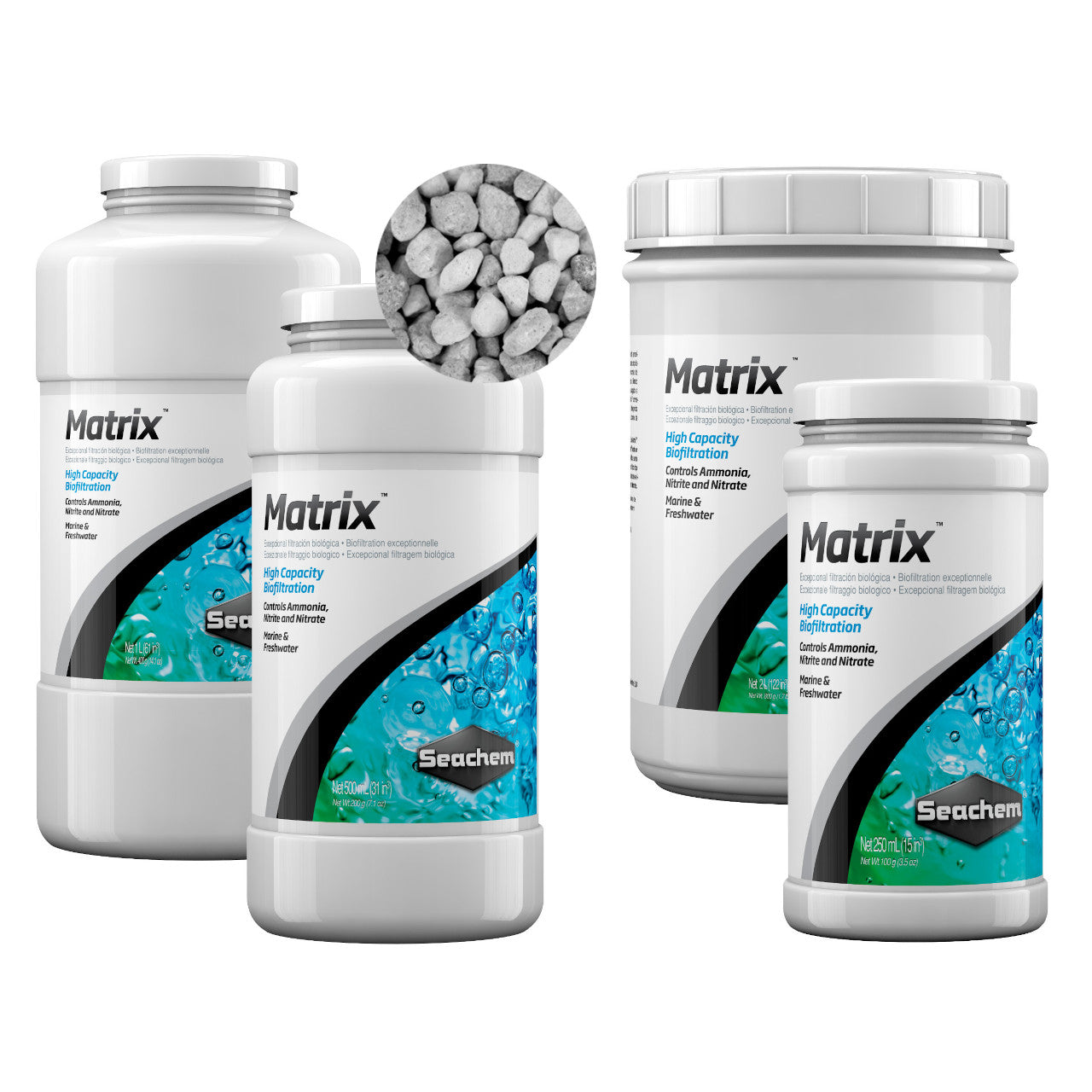 Matrix is a high porosity biomedia that provides efficient biofiltration for the removal of nitrogenous waste. Matrix is a porous inorganic solid about 10 mm in diameter. Each liter of Matrix provides as much surface (>~700 m2) as 170 liters of plastic balls!