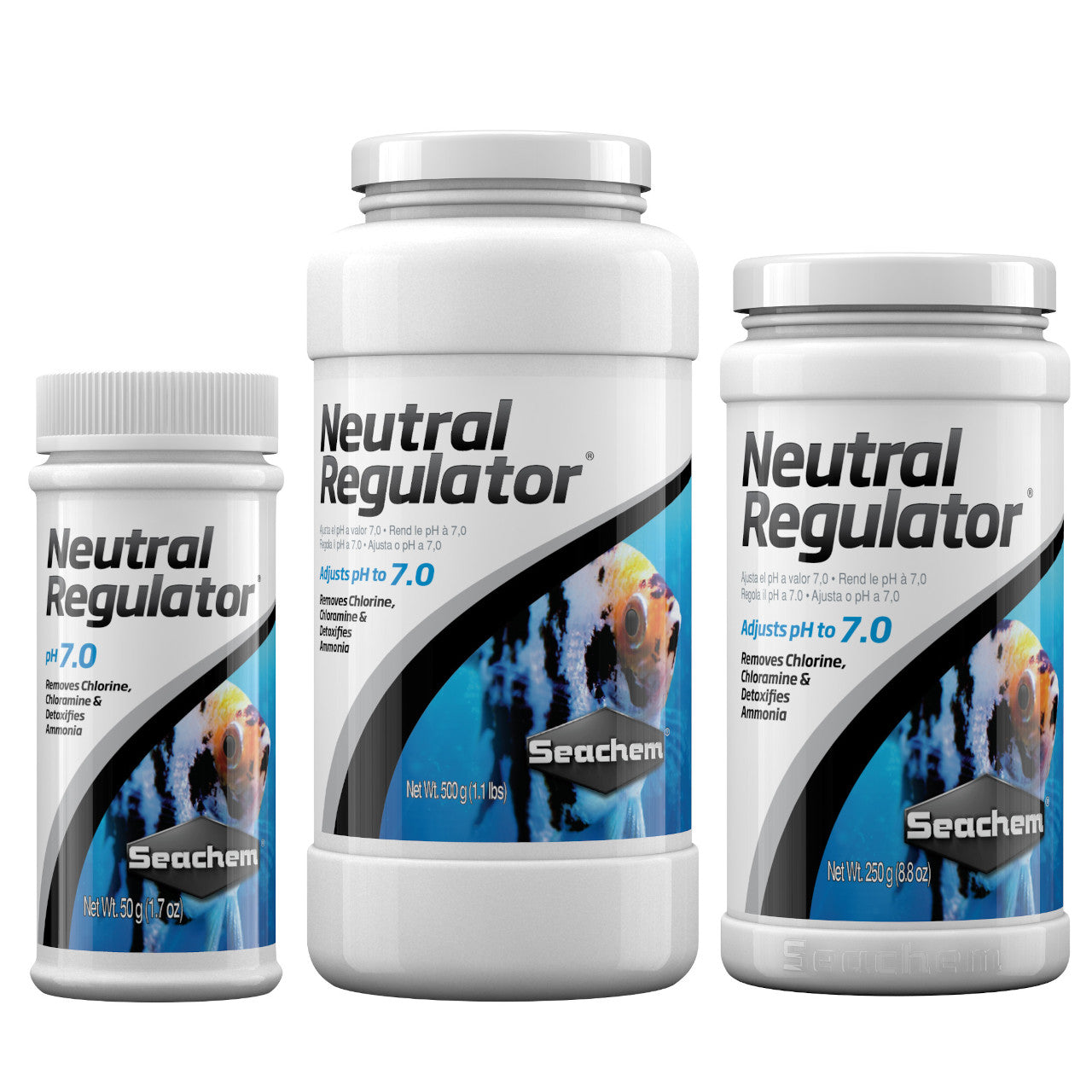 Liquid Neutral Regulator adjusts pH to neutral (pH 7.0) from either a low or high pH and maintains it there. It softens water by precipitating calcium and magnesium while removing any chlorine, chloramine, and detoxifying ammonia. To lower pH below 7.0 use Liquid Neutral Regulator with Acid Regulator (or Discus Buffer). To raise pH above 7.0 use with Alkaline Regulator.