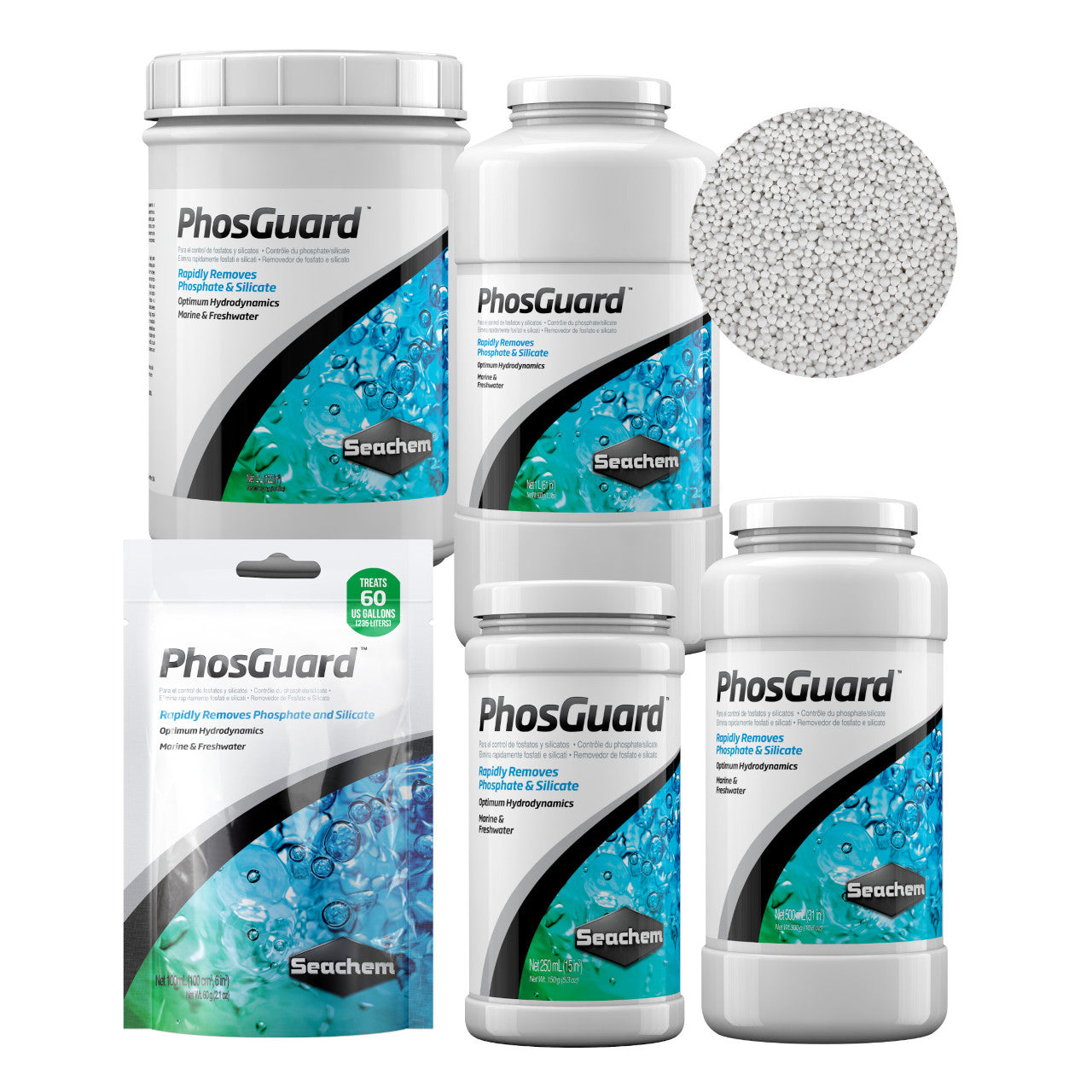 PhosGuard™ rapidly removes phosphate and silicate from marine and freshwater aquaria. Although PhosGuard™ is effective in both fresh and marine water, it will operate better in sea water and the need for it is better defined in sea water. It is not recommended for phosphate buffered freshwater (PhosGuard™ would remove the buffer until saturated). PhosGuard™ is highly porous and bead-shaped to promote easy water flow through and around it, thereby increasing both its efficiency and capacity.