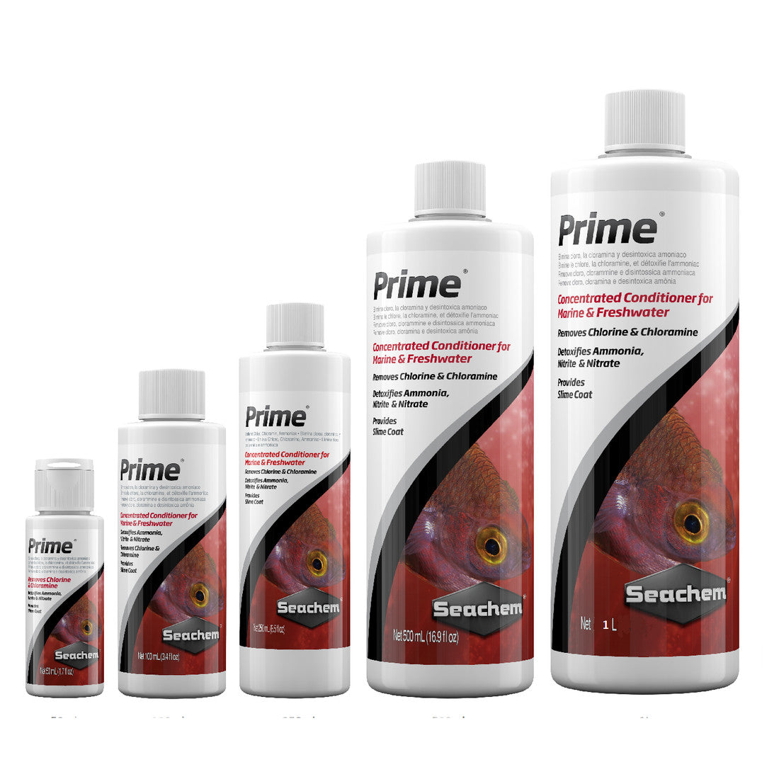 Nearly all pet aquatics companies manufacture a product that removes chlorine. None of those, however, can compare in quality, concentration, or effectiveness to Seachem’s flagship product: Prime. Prime is the complete and concentrated conditioner for both fresh and saltwater. Prime removes chlorine, chloramine and detoxifies ammonia, nitrite, and nitrate. It is non-acidic and will not impact pH.