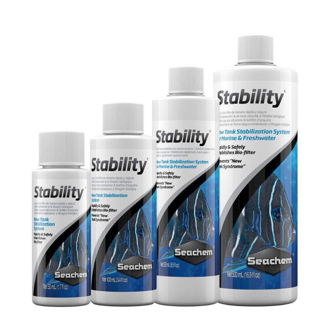 Stability will rapidly and safely establish the aquarium biofilter in freshwater and marine systems, thereby preventing the #1 cause of fish death: "new tank syndrome". Stability is formulated specifically for the aquarium and contains a synergistic blend of aerobic, anaerobic, and facultative bacteria which facilitate the breakdown of waste organics, ammonia, nitrite, and nitrate. The bacteria employed by Stability are non-sulfur fixing and will not produce toxic hydrogen sulfide. Stability is completely harmless to all aquatic organisms as well as aquatic plants, thus there is no danger of over use.