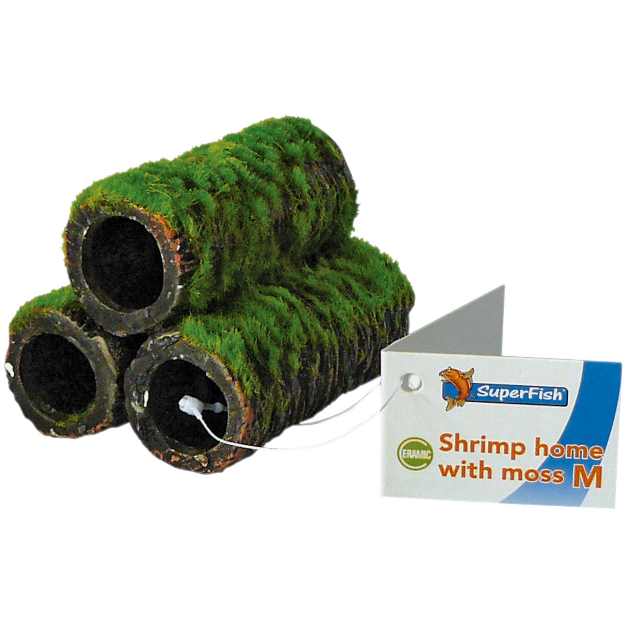 If you don't want to grow real moss on your shrimp hides but still have some green and camouflage on them. You can still attach real moss to those as well and the artificial moss on the tubes serves as a base.