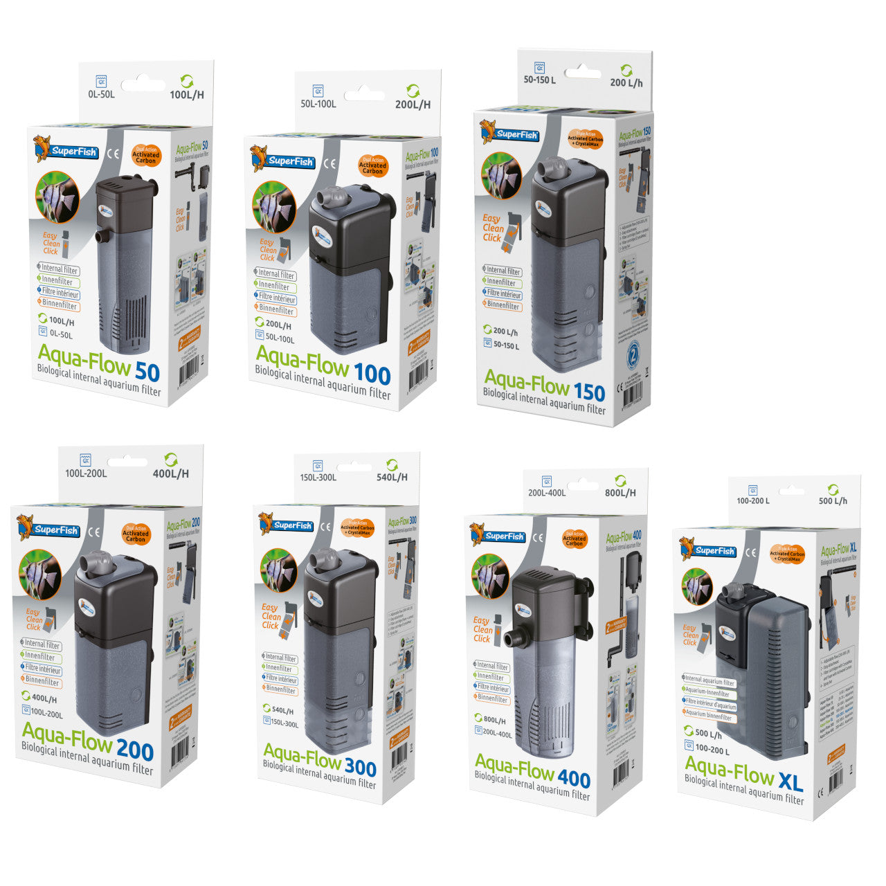 - Aqua-Flow 100, 150, 200, 300, 400: For medium to large tanks, with increasing flow rates and capacities.