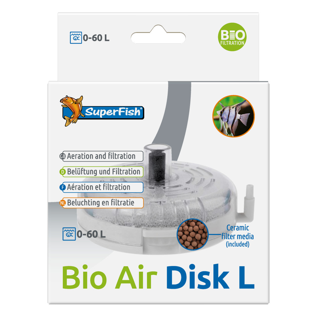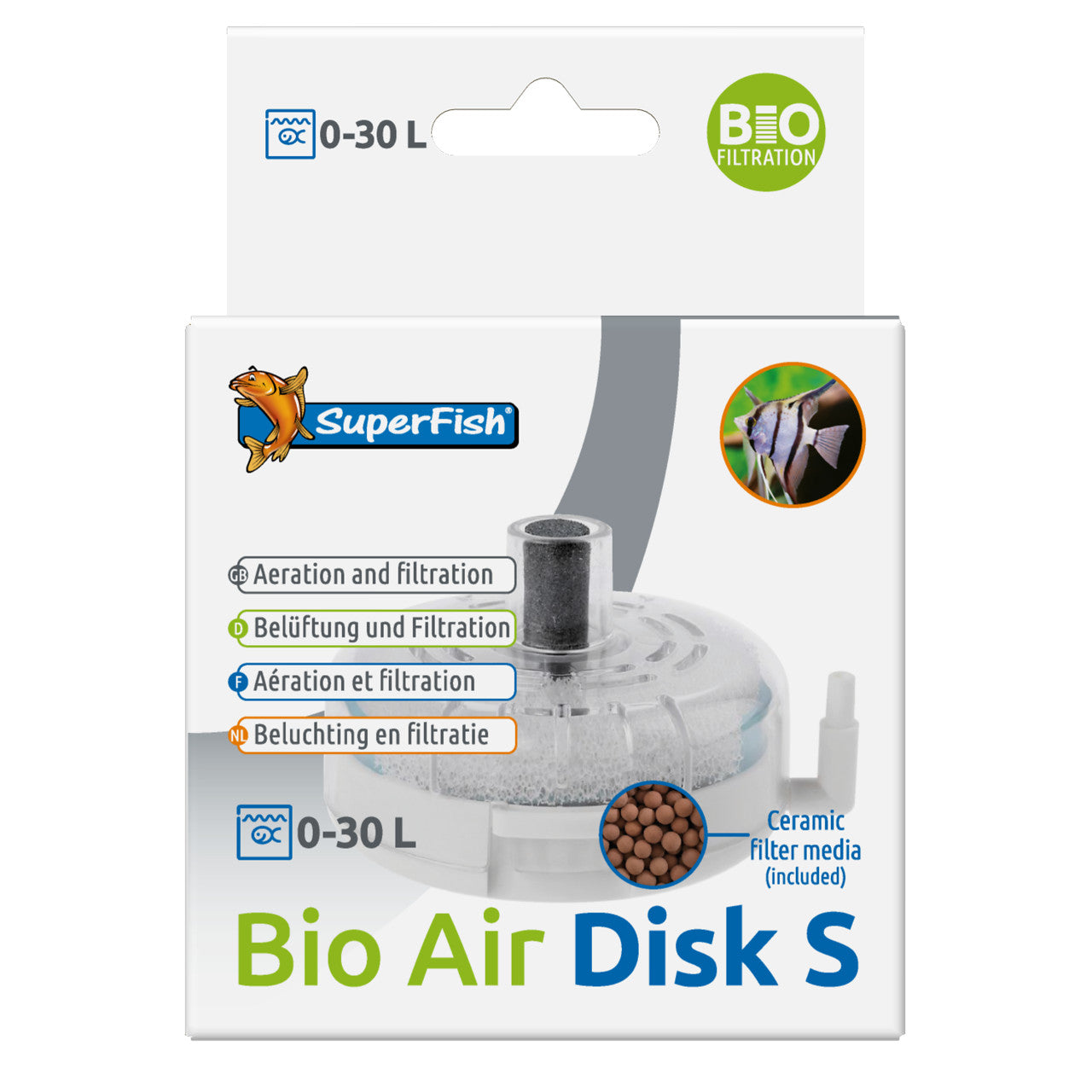 This airlift biological filter provides effective filtration of the aquarium water. Connect the Air Disk filter to an air pump (not included!) and place it on the bottom of the aquarium. The air stone provides additional oxygen and enhances the venturi effect. The sponge and aerobic bacteria convert harmful ammonia (NH3) into nitrite (NO2) and nitrate (NO3).