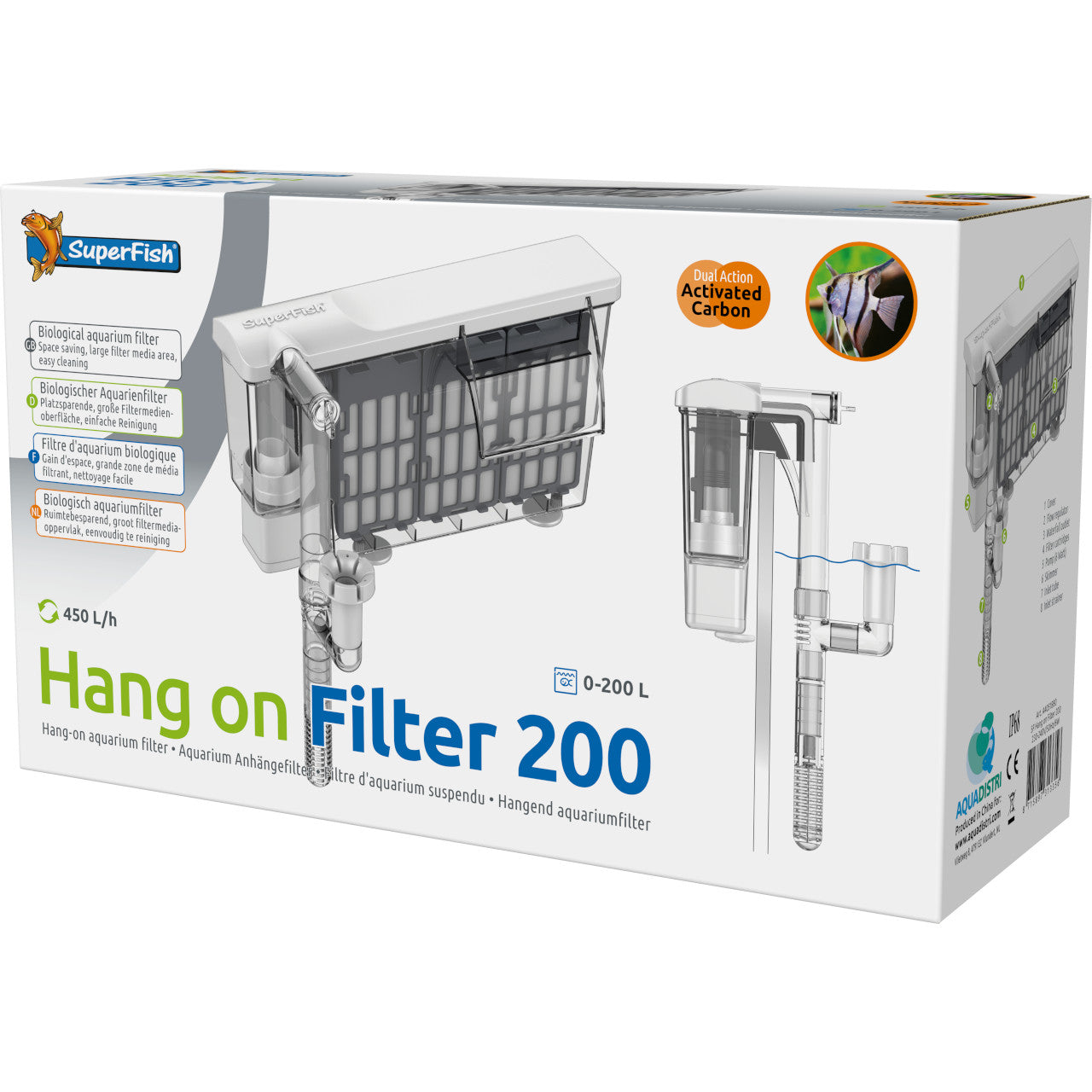Hang on Filter 50, 100 and 200 are external (hang on back) filters for cold water and tropical aquariums. The hang on application of the biological filter at the rear saves space inside the aquarium. The Hang on Filter 100 contains two cartridges. The Hang on Filter 200 contains three filter cartridges.