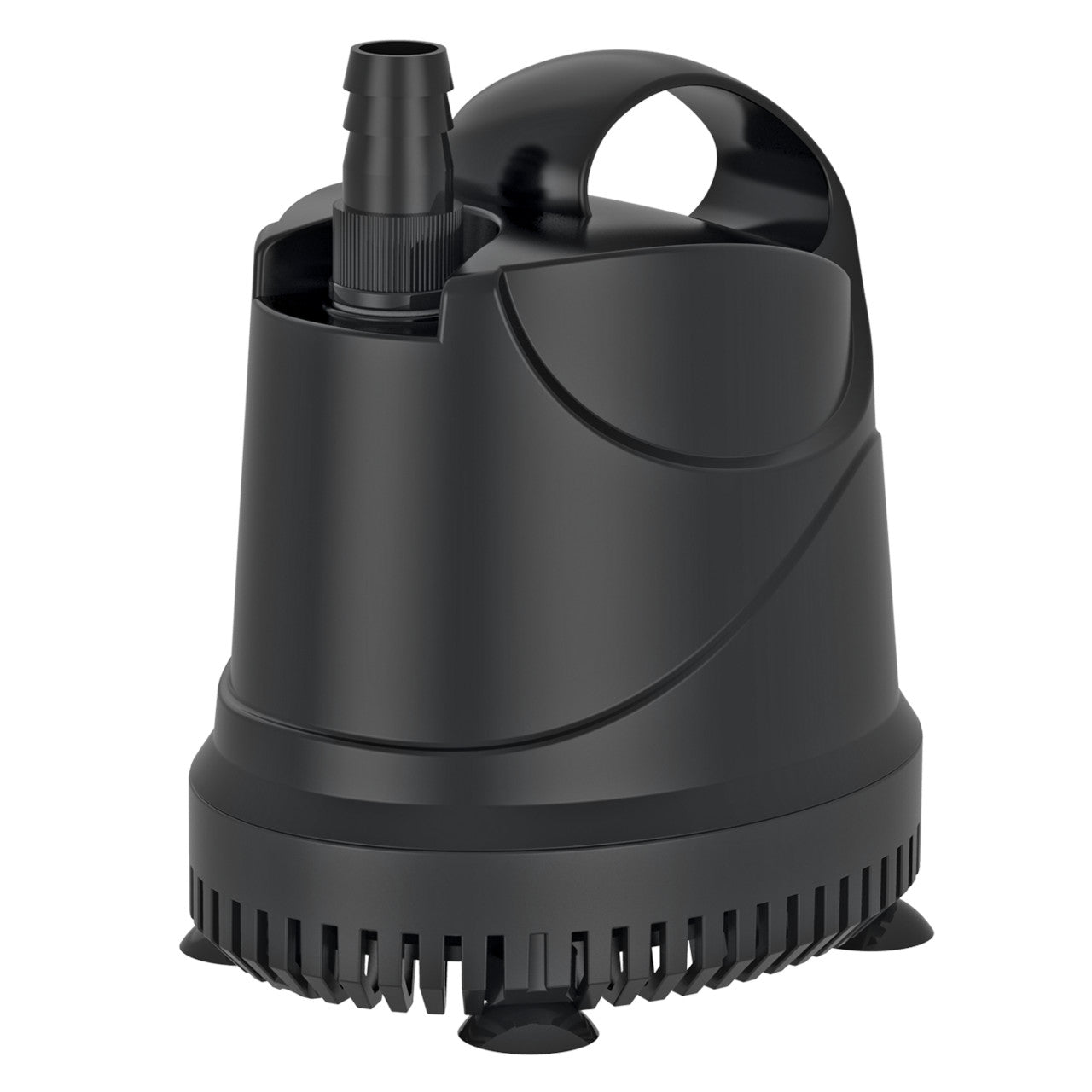 Pumping 2500 L/h, max working height is 2.3m. Outlet size is 12/16/20mm so make sure you have tubing that fits (sold separately). Size 135x105x152mm.