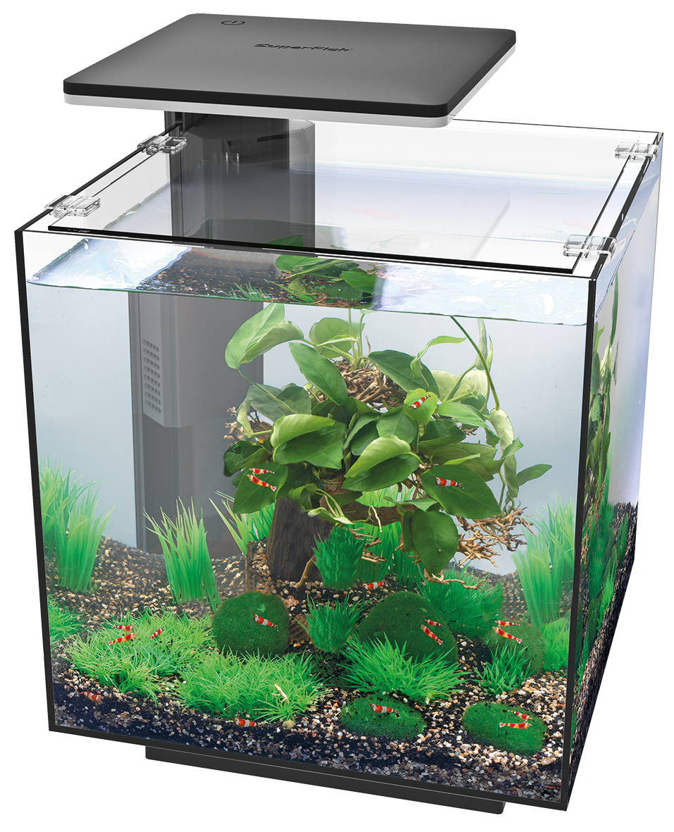This is a modern 30L Nano Cube with integrated filter. The filter compartment offers room for a hidden heater (not included).The quality of these small cubes is excellent and in line with Superfish's popular "Home range" of aquariums.