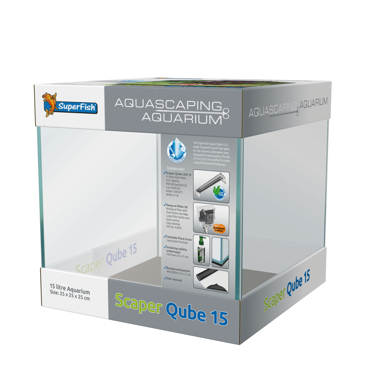 Superfish Scaper aquariums are open-top and made of Crystal Clear glass, which ensures a crystal clear underwater image. The three models have been specifically developed for Aquascaping, so the dimensions are perfect for creating beautifully planted underwater landscapes.
