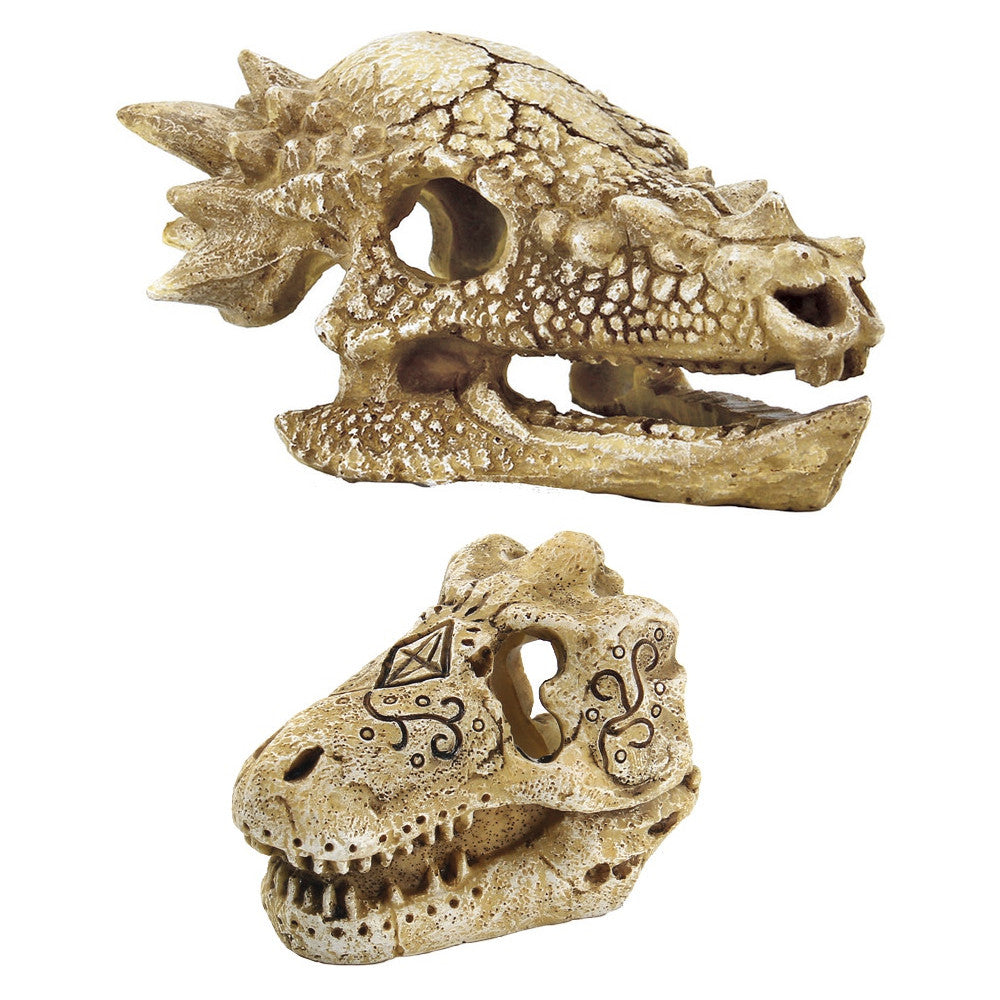 Decorative prehistoric skulls for an archaeological atmosphere in the aquarium. These ornaments also provide shelter for your fish. Safe for your fish and aquarium ecosystem