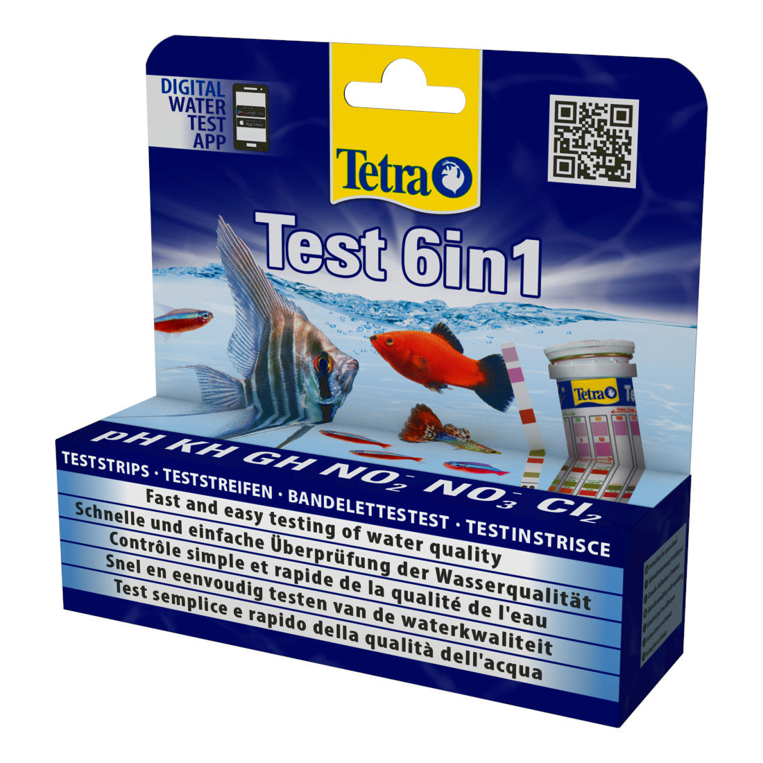 Water test to quickly and easily check aquarium water quality in 60 seconds: test strips measure pH, carbonate hardness (KH), general hardness (GH), nitrite (NO2-), nitrate (NO3-) and chlorine (Cl2)
