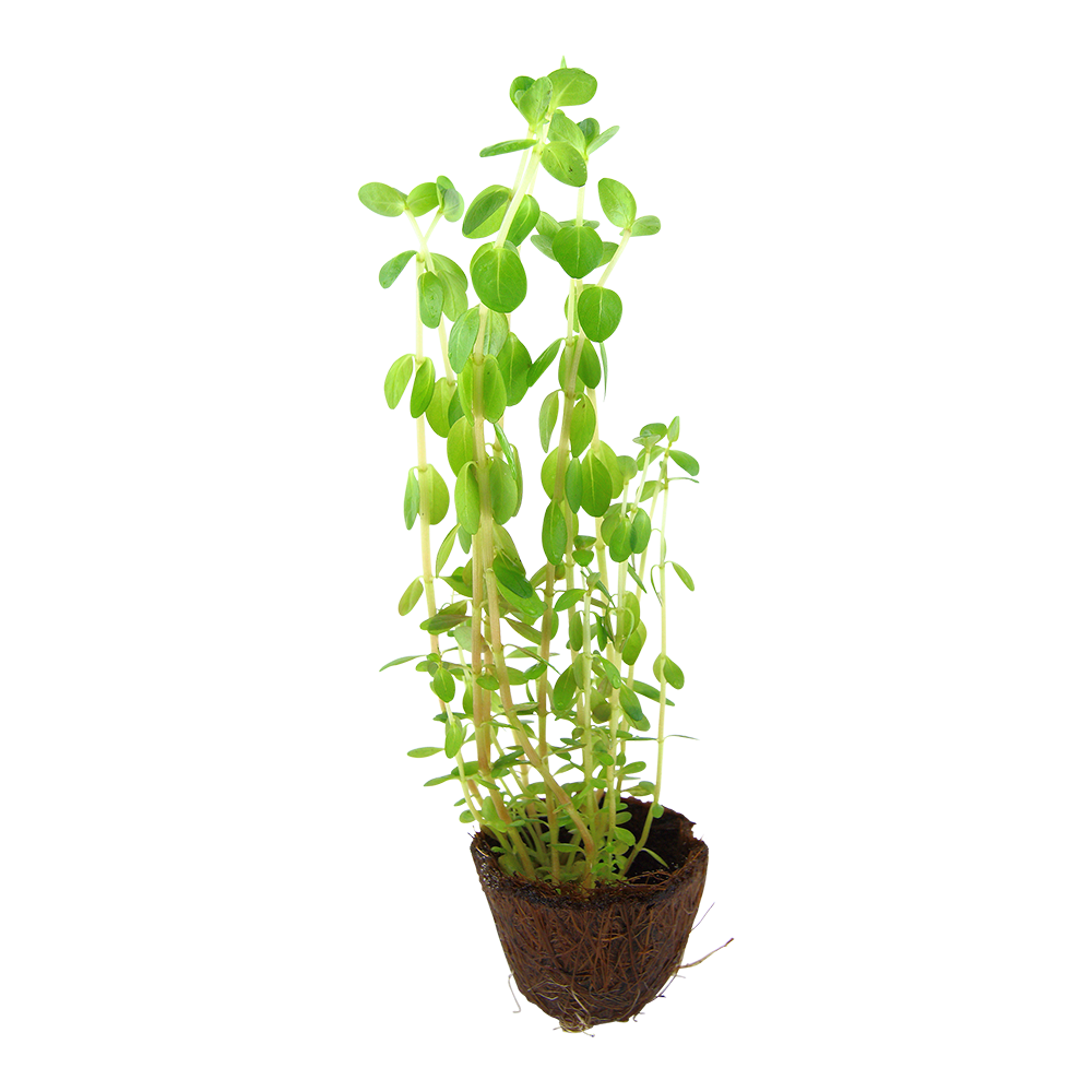 Rotala rotundifolia from South-East Asia has long, thin leaves (2-3 cm wide) and 15-30 long stems. Unlike other Rotala species it is relatively undemanding, although it needs good light to produce red leaves. It forms side shoots willingly, becoming compact and bushy. This also means that it is hard for light to reach the lower leaves, so the plant should be pruned frequently.