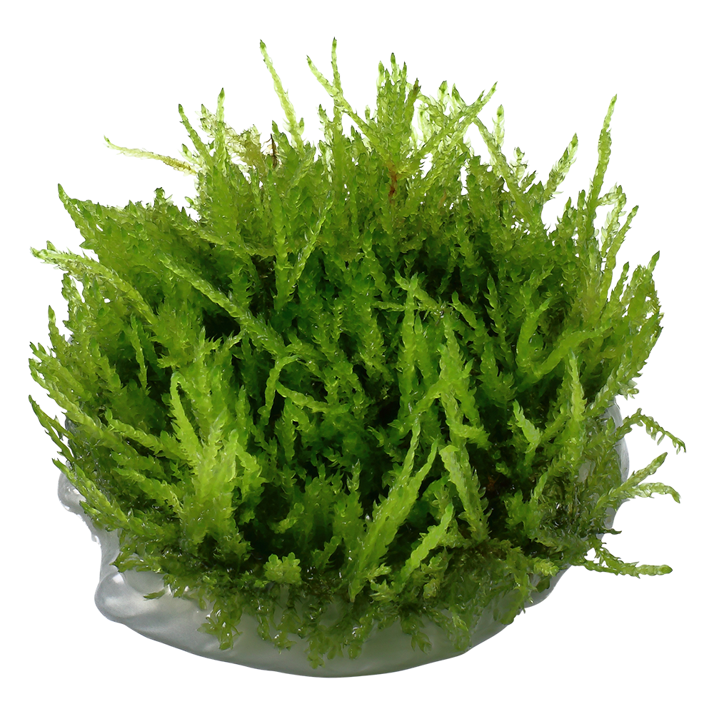 Vesicularia ferriei 'Weeping', commonly known as Weeping Moss, is believed to originate from China and has been distributed by Oriental Aquarium Plants. 'Weeping' is a fleshy, 1-3 cm tall hanging moss with teardrop-like bright green shoots. It is best attached to driftwood or roots, as its drooping growth pattern helps to create depth and contrast in the aquarium. 'Weeping' has low demands, is fast growing and should be pruned frequently with scissors to maintain an attractive shape.